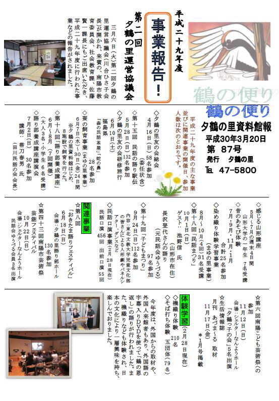 今月号の夕鶴の里館報 第87号には、平成29年度に行われた
