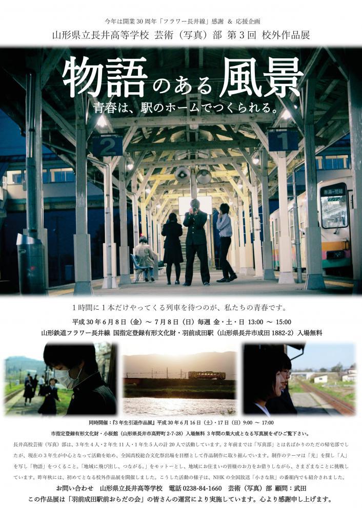 山形県立長井高等学校 芸術(写真)部 第3回 校外作品展「物語のある風景 青春は、駅のホームでつくられる。」のお知らせです。-1時間に1本だけやってくる列車を待つのが、私たちの青春です。-●日時:平成30年6月8日(金)〜7月8日(日) 毎週金・土・日曜日の13:00〜15:00●場所:羽前成田駅(国指定登録有形文化財)●入場料:無料●お問い合わせ:山形県立長井高等学校 芸術(写真)部顧問(TEL:0238-84-1660)詳しくはこちら(PDF793KB)をクリック!
