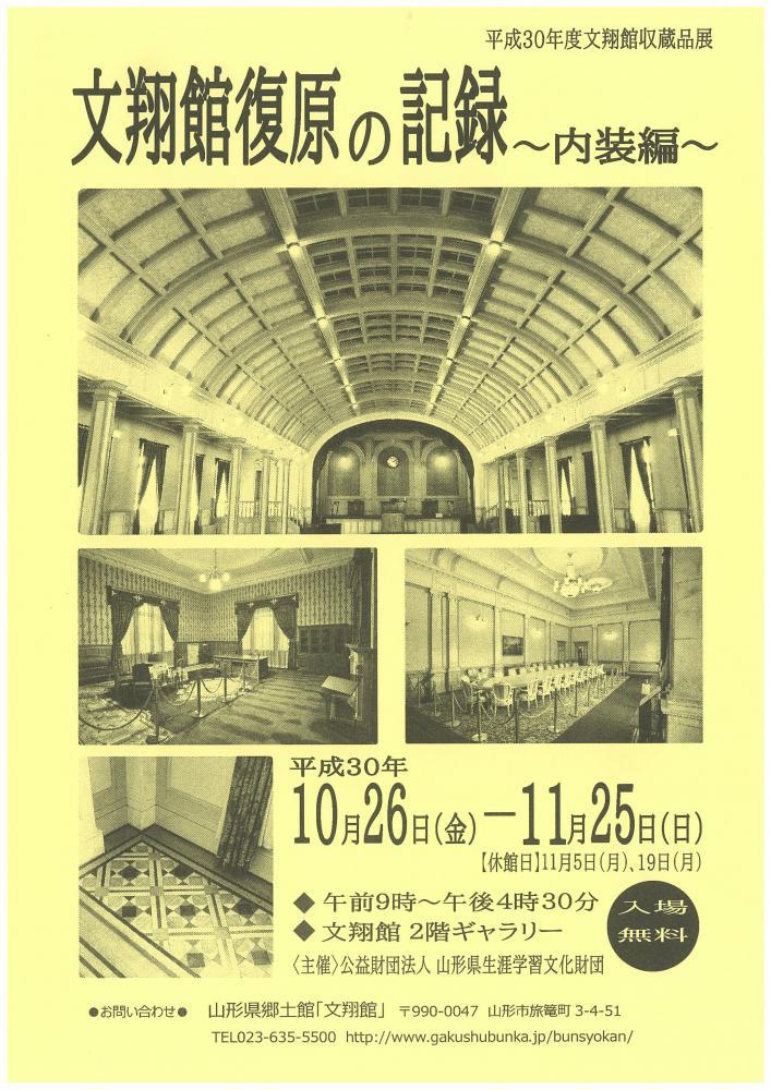 「文翔館復原の記録〜内装編〜」のお知らせです。●日時:10月26日(金)〜11月25日(日) 9:00〜16:30●休館日:11月5日(月)、19日(月)●場所:文翔館 2階ギャラリー●入場料:無料●お問い合わせ:山形県郷土館「文翔館」 〒990-0047 山形市旅篭町3-4-51●TEL:023-635-5500●HP:http://www.gakushubunka.jp/bunsyokan/詳しくはこちら(PDF1.45MB)をご覧ください!