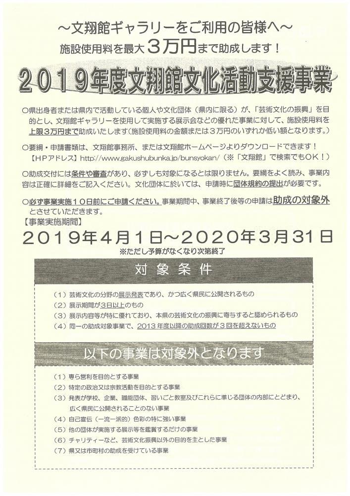 ▼2019年度文翔館文化活動支援事業の募集