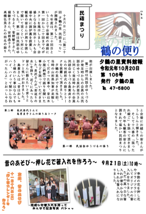 夕鶴の里館報第106号発行いたしました。