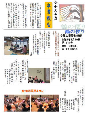▼夕鶴の里館報 第111号発行!!