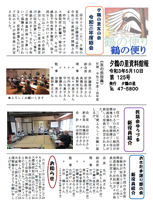 夕鶴の里館報第125号を発行しましたので、