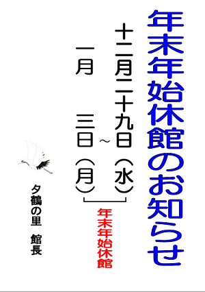 夕鶴の里の年末年始の休館は下記の通りとなります。