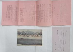 この資料には第五回文部省美術展覧会へ出品した『雪の渡場(最上川)』の絵葉書と一緒に画歴と頒布規定が書かれた用紙も同封されていました。