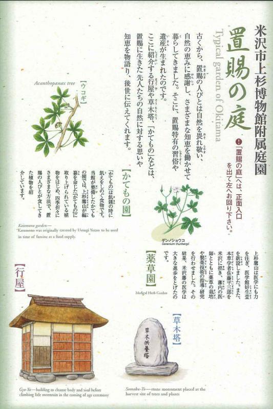 付属庭園「置賜の庭」の整備を行いました。 庭には上杉鷹山が編纂を命じた『かてもの』に取り上げられている食べられる植物や薬草が植えられています。 今回の整備では、一年草の植え付け、植物名のプレートの取り付けなどを行いました。草刈りも済み、美しく懐かしい「置賜の庭」を是非散策してみてください。