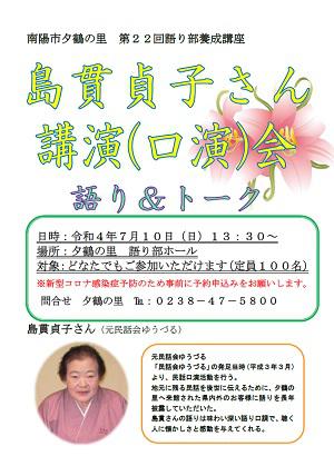 講演内容は元民話会ゆうづるの島貫貞子さんの語り&トークです。