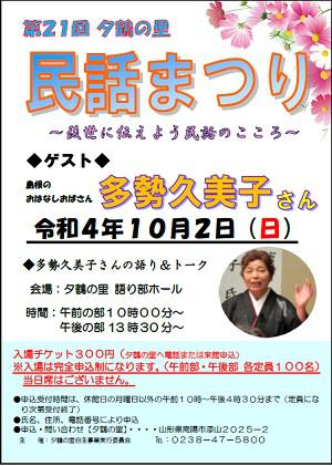 夕鶴の里では10月2日(日)に第21回 夕鶴の里「民話まつり」を開催します。