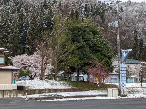 夕鶴の里の駐車場から見えた桜が寒そうでした。