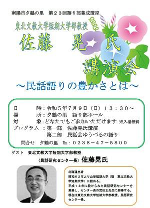 内容は第1部が東北文教大学短期大学部教授佐藤晃氏の講演「民話語りのゆたかさとは」という演題で当館にも深く関わりがあった故 武田正先生のエピソードを交えながら民話語りの魅力についてご講演いただきます。