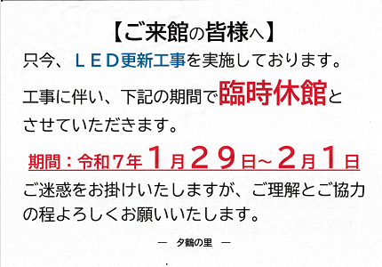 只今、夕鶴の里ではLED更新工事を実施しております。