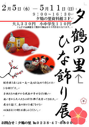 夕鶴の里では今年も資料館3階にて「ひな飾り展」を行います。