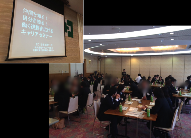 2015年4月の週末、山形市内を一望できる場所にある宿泊施設の大会議室を会場に、「仲間を知る!自分を知る!働く視野を広げるキャリアセミナー」を開催しました。 今回は山形県内にある某企業様のご依頼。事業所が離れていて交流があまりないので、研修を通して他の事業所の社員同士の交流を図りたいというご相談でした。 年齢もバラバラ、経験もバラバラ、学歴もバラバラの多様な皆さんに対して、交流を深めながら日々の業務のお役に立てるような内容ということで、「キャリア」をテーマにしたワークショップ型の研修を実施することにしました。 参加者は全部で69名、15グループに分けての実施。普段接触の無い人同士、男女・年齢もバラバラなグループで、開始当初は皆さんかなり緊張の面持ちでいらっしゃいました。アイスブレイクの自己紹介ワークを始めるとすぐに打ち解け始め、和やかな雰囲気となりました。 ワークが中心で、ほとんど講義らしい講義はなかったのですが、ワークの中から「他者との関係性」や「自分らしさ」など、それぞれに気づいたことをたくさん持って帰っていただけたのではないかと思います。 2時間半の研修は、あっという間に時間が過ぎ、帰る際には皆さんニコニコと楽しそうにお話をしながら会場を後にされる様子がとても印象的でした。 なにはともあれ、研修が終わって生き生きとお帰りになる姿を見るのはとても充実感を感じる良い瞬間です。