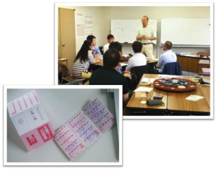 5月15日ー16日の2日間、山形市のあこや会館にて第52回まみがさきMGを開催しました。今回のMGは3卓15名の参加、そのうち半分の7名が初参加のMGとなりました。初参加の方が多いMGもまた奥が深い。例えばAppleが携帯音楽プレーヤー市場に参入した時のような、大きな市場変動が起こり、普段の勝ち筋が通用しないことが発生します。私も2期目は初参加のHさんの思い切った価格勝負で売り負けてしまって沈んでしまいました^^;それでも今回は私にとって「100期目」の記念すべきMG。なんとしても浮上したいという思いで頑張っていたら、「研究開発成功」「広告成功」「営業マンの努力実る」などのラッキーカードが次々と舞い込んできて、5期終了時の結果は2位まで浮上できました。講義では、インストラクターの原田さんがMQ会計の活用について、私たちの会社が実際に活用している具体的事例を踏まえながら話しをしました。ここまで身を削って具体例を出すのはまみがさきMGだけではないでしょうか(笑)MGは「行入(やってみる)」が主ですが、やってみたあとに「理入(理屈を学ぶ)」があるからこそ成長できるのだと思います。初心者の方の中には、やはり決算に苦労される方も少なくありませんが、何度も繰り返しやっているうちに身体で覚えてくるものです。「もうやりたくない!でも、忘れないうちに早くやりたい!」今回初参加の方からは、こんな感想文も寄せられました。私も2013年3月に初めてMGをやってから2年が過ぎ、ようやく100期を迎えました。私も最初の頃は、決算が苦しかったなぁということをシミジミ思い出しました。MGでは、「25期で経理がわかる、50期で経営がわかる、75期で戦略がわかる、100期やれば人間が変わる戦略マン!」と言われます。今回100期を超えて、これからどんな風に自分が成長していくのかがますます楽しみになりました。次回は7月10日(金)−11日(土)の2日間、今回と同じ山形市あこや会館にて実施します。参加してみたい!という方はまみがさきMG特設ページよりお申込みください。