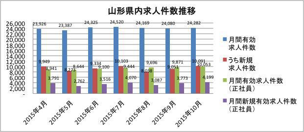 2015年11月27日、山形労働局は「県内の雇用情勢 (新規学卒者を除く)平成27年10月内容」を発表しました。 県内の有効求人倍率は1.21倍、正社員求人倍率は0.74倍と上昇しています。 求人総数も増えていますが、特に正社員求人件数は2015年4月以降で初めて1万件を超え、引き続き企業の採用意欲が高いことがわかります。 企業の採用意欲が高い状況は、転職者の方にとってはチャンスである一方で、たくさんある求人の中から本当に自分の生き方・暮らしにあった会社がどこかを見極めるのが難しくなるタイミングでもあります。見かけの給与や待遇だけで安易に転職してしまって、後で後悔してしまう人も少なくありません。 社風や環境、入社後の生活をきちんとイメージして、入社してから「こんなはずじゃなかった」とならないためにも、幅広い情報収集が必要です。当社コンサルタントへお気軽にご相談くださいね→求職登録・相談窓口はこちら