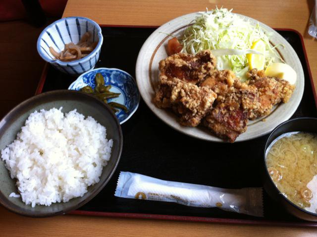 ほかに、サラダの上に唐揚をのせ、ゴマ醤油ドレッシングをかけたサッパリ仕上げの鶏唐サラダ定食(780円)もオススメ。
