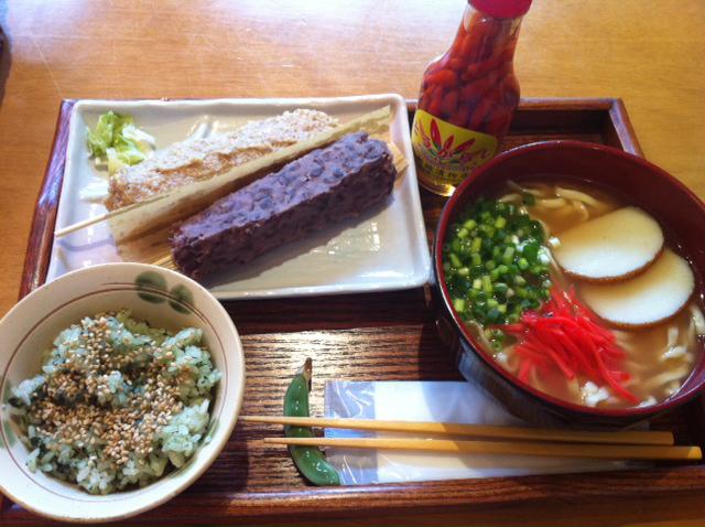 (白米ではなく、ウコギご飯のような混ぜご飯。味はウコギではない)