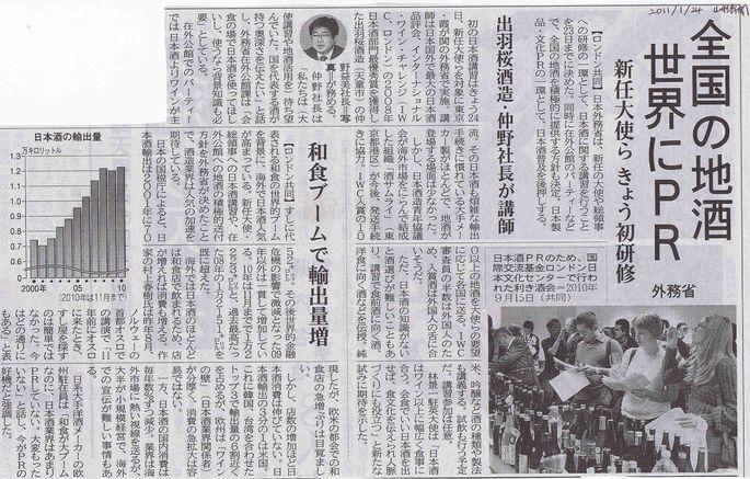 2011年1月24日 山形朝刊の記事 「全国の地酒 世界にPR」