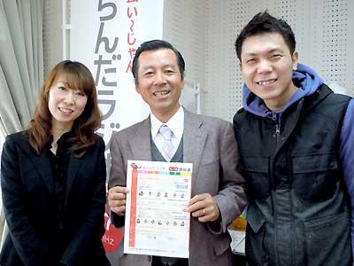各地のFM放送局をまわっている リスナーの ”黒木眼医者(クロキメイシャ)” さんがスタジオに遊びに来てくれました♪ 今日の 「ひるらじ」 の打ち合わせ中のパーソナリティの瑞穂さんと山形住みます芸人の 笑福亭笑助さん と記念撮影! ”黒木眼医者(クロキメイシャ)” さん、面白いお話をいっぱい聞かせて頂き、ありがとうございました〜! 近くにお越しの際は、また遊びに来てくださいね♪