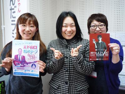 「ひるらじ」 りんご漬が嫌いな 奈美さん と 生りんごが嫌いな みわさん。今日のおらんだのニュースにご出演いただいた 長井市まち住まい整備課の佐原さん♪ いやぁ、盛り上がりました!今日のテーマは 『食わず嫌いとその理由』 です。 皆さま、意外なものが嫌いなのですね〜。みわさんの 生りんご嫌いに共感のリスナー様も! 摩り下ろしたりんごや焼いて加工したものはOKなのだそう。不思議なものですね〜。 おらんだラジオからの太っ腹プレゼント 『エド山口オンステージ』 の当選もありました!当選した オオルイさん、おめでとうございます。楽しんできてくださいね♪ さて、「ゆうらじ」 でも引き続き、メッセージを募集しております。嫌いなもの、食わず嫌いなもの、教えてくださいね! 『ながい温泉の宴』、ゲリラチケットプレゼント!今すぐ、取りに来てくれる方先着2名にプレゼントします。急げ〜〜〜〜っ! ::::: エフエム い〜じゃん おらんだラジオ 土日は増刊号を聴いてね! :::::