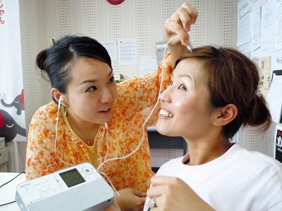「ひるらじ」 良子さんと望美ちゃん、何やってんですかっ!?録音できるラジオを購入した良子さん、望美ちゃんで遊んでいます・・・望美ちゃんにジャック(差込口)はありませんから。(たぶん) 今日のメッセージテーマは 『お祭りの屋台でつい買ってしまうもの』 です! 今週末は黒獅子まつり♪おらんだラジオの入っているタスビルの斜め道向は、会場となる白つつじ公園。屋台がたくさん並んでおります。 早速、玉こんにゃくと焼き鳥と草岡ハムのフランクを食べました〜。黒獅子まつり当日には、もっとたくさんの屋台が並びます。おらんだラジオも生放送を予定しています。ぜひ、遊びに来てくださいね! ●メッセージ・リクエストはこちら おっと、もう 「ゆうらじ」 始まっちゃったよ・・・。今日の ゆうらじ は、瑞穂さん。しっとり大人の雰囲気です。でも、明日の ひるらじ は、ちょっと塩味がきいた瑞穂さんがお楽しみいただけますよ〜♪ こちらは、今日の朝〜。テツ & トモ のような色合いの二人。楽しそうです〜♪ ::::: エフエム い〜じゃん おらんだラジオ おまつりワクワク♪ :::::