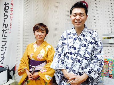 本日お盆のひるらじパーソナリティ、浴衣姿の素敵な奈美さんと笑助さん。
