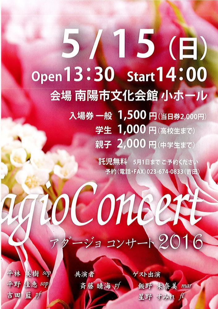 ▼【プレゼント】アダージョコンサート2016 ペアチケットを2組に!−応募締切−