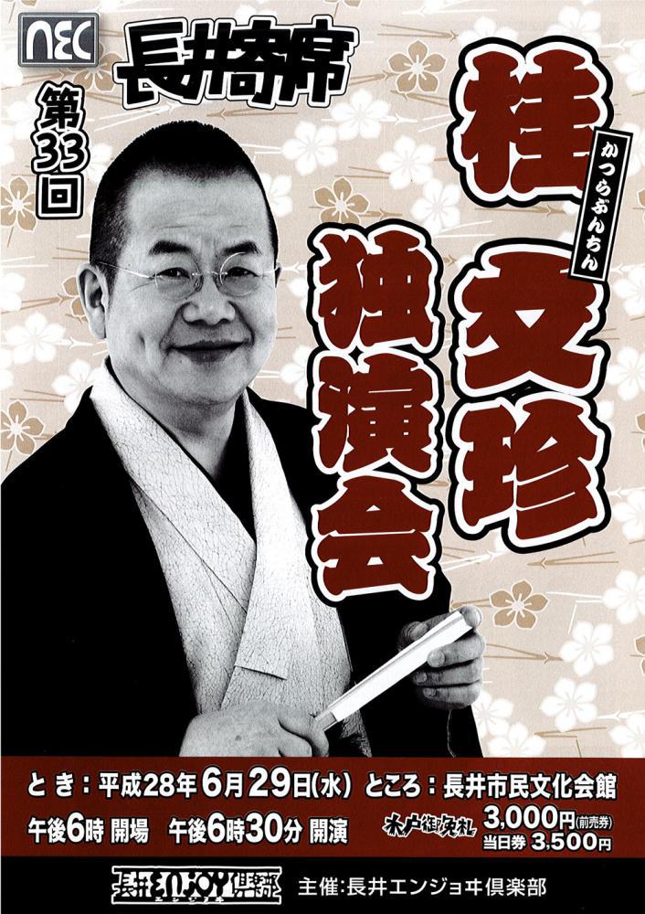 テレビなどでもお馴染みの 桂文珍師匠が長井に来る!毎年、第一線の落語家を招待している 長井寄席。今年は 桂文珍師匠の独演会です。 主催者である「長井ENJOY倶楽部」さんより、ご提供頂いたチケットをペア(前売り3,500円×2枚)にして 2組さまにプレゼント!上方落語を代表する 文珍師匠のセンスのよい落語を ぜひお楽しみください!! ※※ プレゼントの応募は締め切りました。たくさんのご応募ありがとうございました。 ※※ ■■■ 第33回長井寄席 『桂文珍 独演会』 チケットをペアで2組に ■■■ 第33回 長井寄席 『桂文珍 独演会』 日 時 : 2016年6月29日(水) 開 場 : 長井市民文化会館 (開場 午後6時 開演 午後6時30分) 前売券: 3,000円 当日券:3,500円 ※長井市内のポスターのある取扱店で購入できます <応募方法> おらんだラジオホームページのメッセージフォームまたはメールで 以下の内容をご記入の上、ご応募ください。 第33回長井寄席 『桂文珍 独演会』 チケット 希望 ラジオネーム : お名前 : 連絡の取れるメールアドレスまたは、電話番号 : <応募条件> ・募集締め切り 2016年6月20日(月)ゆうらじ 終了まで ・おらんだラジオまで直接チケットを取りにきていただける方に限ります ※応募多数の場合には抽選となります ※当選者には、おらんだラジオ事務局よりご連絡致します ::::: エフエム い〜じゃん おらんだラジオ 77.7MHz :::::