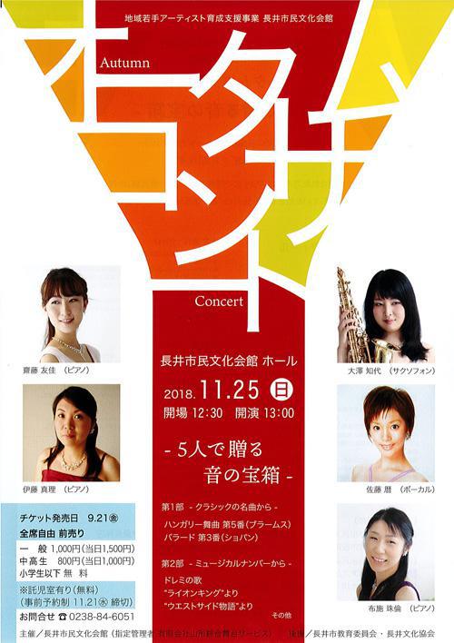 ▼【終了】11/25(日)『オータムコンサート -5人で贈る音の宝箱-』 ペアチケットを先着 5組に!