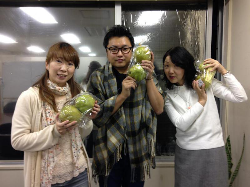 おらんだラジオ1周年記念12時間ぶっ続け生放送、特別枠の14時から17時までの生放送が先ほど終了しました!迎田幸子さんと井上瑞穂の二人での予定でしたが、急きょ、ひるらじ終わりのたっぴろくんも参加してくれました。結局最後までいてくれたので、たっぴろくんは合計5時間!!お疲れさまでした。スタジオに遊びに来てくれたゲストのみなさんのおかげで、あっという間の3時間でした。また、あたたかいメッセージをくださったみなさん、ありがとうございました。高石ディレクターも3時間の中継、お疲れさまでした。伊佐沢直売所からのおみやげ、ラ・フランスを持って帰ってきてくれました!!すっごく大きな、立派なラ・フランス。食べるのが楽しみ♪