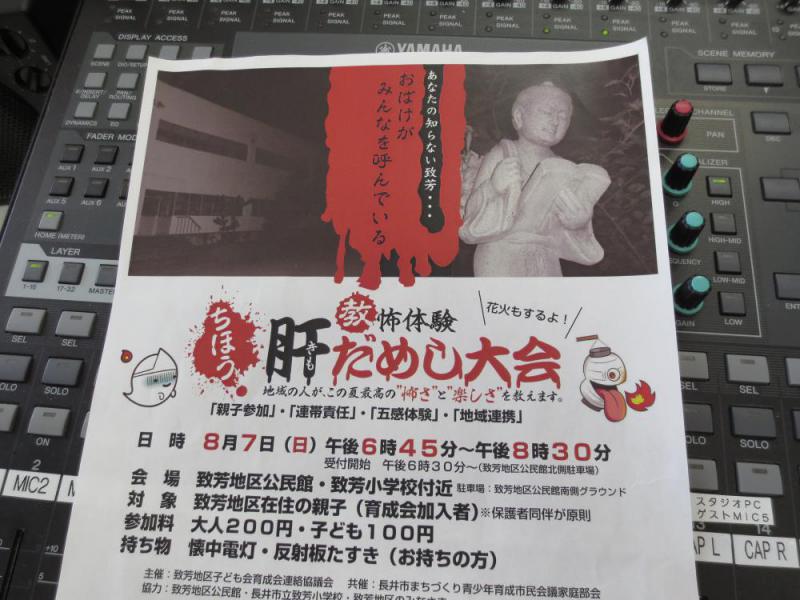 みなさま、おはようございます。月曜けさらじ担当たいらみわです。 梅雨明けを待たずに、すっかり気分は夏モード。 今日のテーマは「夏の食べ物と言えば!」です。 スイカに冷やどん、かき氷に生ビール、何だかお腹をこわしそうな感じが しないでもないような、するような・・・(笑) これをたべなきゃ夏じゃない!そんなメッセージお待ちしています。 さて、本日ゲストの致芳地区公民館の飯澤さんにご案内いただいたイベント、 「ちほう肝だめし大会」。大人でもワクワクする企画ですね。 私もお化け役で参加しようかな。すっぴんでいくのが一番怖い?!