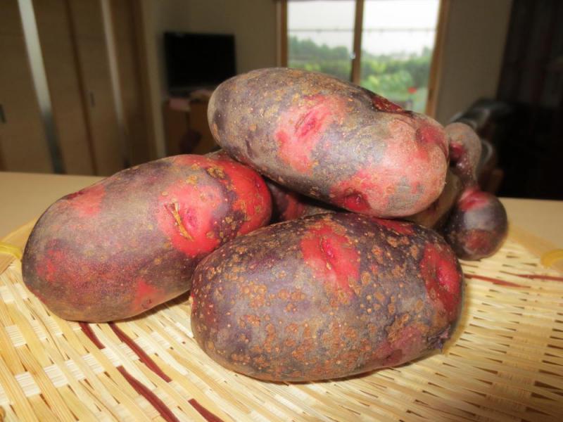 みなさま、おはようございます。火曜けさらじ担当たいらみわです。 今日のテーマは「好きなじゃがいも料理」。私はポテトコロッケが好きです。 さて、写真は、「デストロイヤー」という品種のじゃがいもです。家の畑で栽培しました。 赤紫色の皮、インパクトのある名前。中身は黄色がかった色で、 ホクホクしてとってもおいしいじゃがいもです。 みなさんの好きなじゃがいも料理、教えてくださいね♪