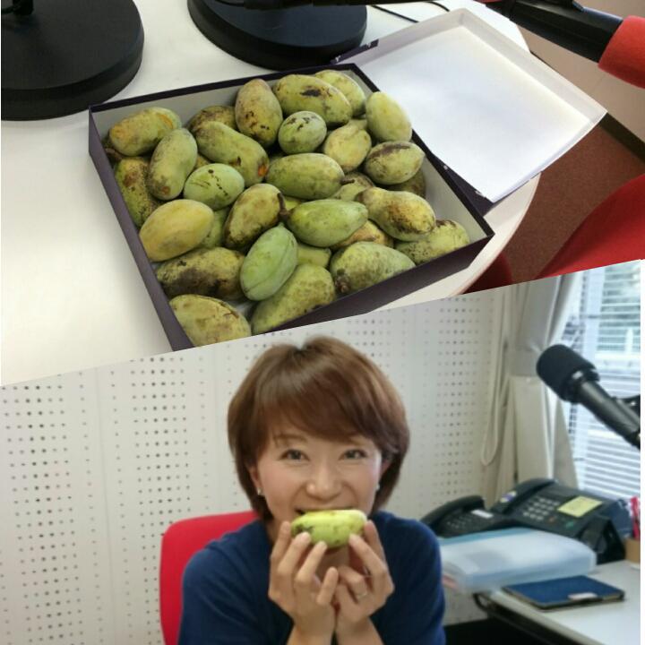 今日のメッセージテーマは「気になること」ひるらじで、今一番気になるのはポポーという果物、というお話をしたら、リスナーさんが差し入れ持って来て下さいました!!!庭に、ポポーの木があるそうなんです。アケビのような形、メロンのような香り、柿のような種、バナナとマンゴーを足して2で割ったような味わい…♪嬉しい!美味しい!ありがとうございますー!