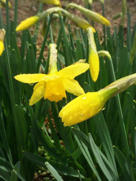 先週、水仙をみつけて「あれ?こんなに水仙って短かった??」と不思議に思いながら、写真に撮ってブログに載せたのですが…この1週間そこそこで…スラリと伸びて…雫を乗せて。なんで愛らしいのでしょう。まるで、少女が成長してティアラをのせた感じ。親指姫がいたような感じでした。この歳になって、童話の世界がみれるとは!ちょっと嬉しい春の一コマでした。