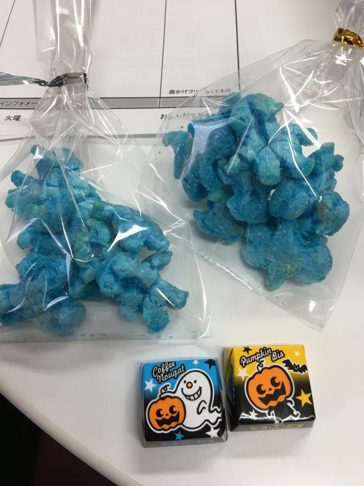 皆様こんにちは。トリックアトリート♪お菓子をくれなきゃイタズラするぞ\(^ω^)/本日がハロウィンという事は!10月も最後ですね。早いですねー後2ヶ月で今年も終わっちゃいますよ!やり残した事は無いですか!?写真は、奈美さんからといただいたお菓子です♪なんと!青い煎餅らしいです☆どんな味ならワクワクです(^^)v今日のメッセージテーマは【ハロウィン♪】です。こんなパーティしたよー や、こんな仮装したよー など、ハロウィン♪のお話を教えてくださいo(^▽^)o12時から15時まで、時間の許す限りお付き合い下さい。
