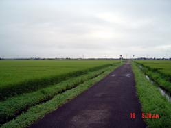 私には東山魁夷画伯の「道」のように思われるこの一本道をウオーキングする