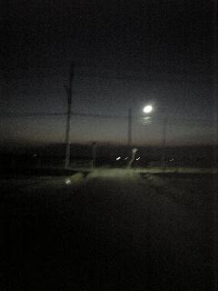 日が昇る前のウオーキングの道は暗い、暗い一本道