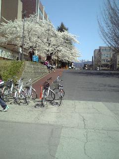 ちょうどスロープの上にある桜が満開である