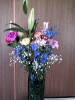 そん時の花であるいつも買っていたバラがなかったので、ゆりとカーネーションでまとめてもらった