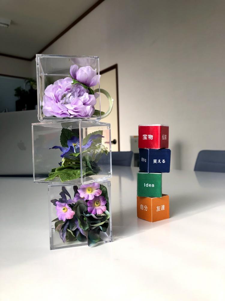 ミニマムをすすめるとダイアログが広がり出す。例えば・・・サイコロトーク例えばアーティフィシャルフラワー→ てのり花→ CMG(R)ひらめきメソッド