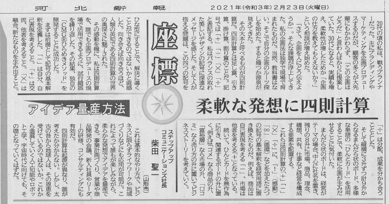 河北新報社「座標」コーナー
