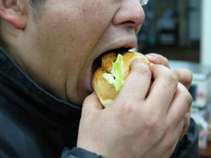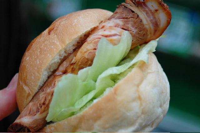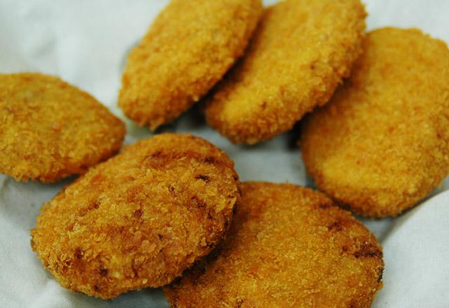 お肉屋さんの揚げたてお惣菜を挟んで♪