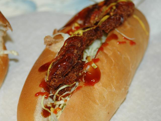 今回はその場で揚げた熱々のカツをそのままパンにドッキング。