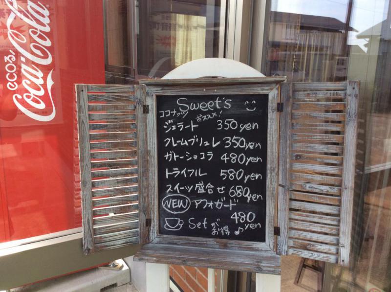 拝啓 陽(ひなた)です。 当店のオブジェをもう一つご紹介します。普段風除室に置いてあるこの黒板、スイーツのメニューを表示するのに使用しておりますが、これも先日の記事でご紹介した黒板同様アンティーク調な雰囲気が気に入って購入しました。こちらもお客様から好評です。 敬具