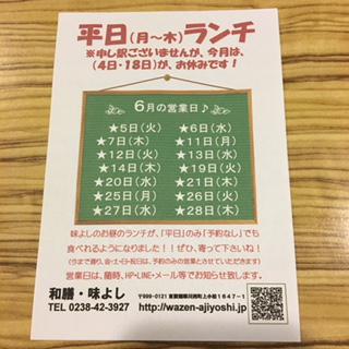 ●味よしの月曜〜木曜の平日ランチ・・・「お昼も美味しいね〜(^^♪」「また来るよ!」と、だんだんと定着してきた気がしているところです。ありがとうございます!!
