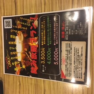 ★お一人様 ¥3500円{盛り込み料理が5〜6品&飲み放題のお得なプラン}