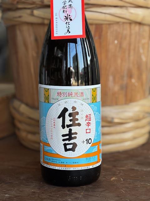 【特別純米酒 超辛口 住吉+10】は、酒米コシヒカリ100%を使用、日本酒度が10度と、超辛口のお酒。