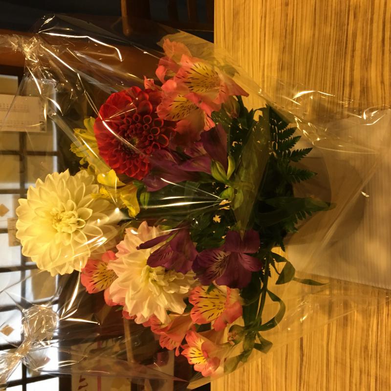 花束は、チモシーさん、アレンジメントは、小松花屋さんです!