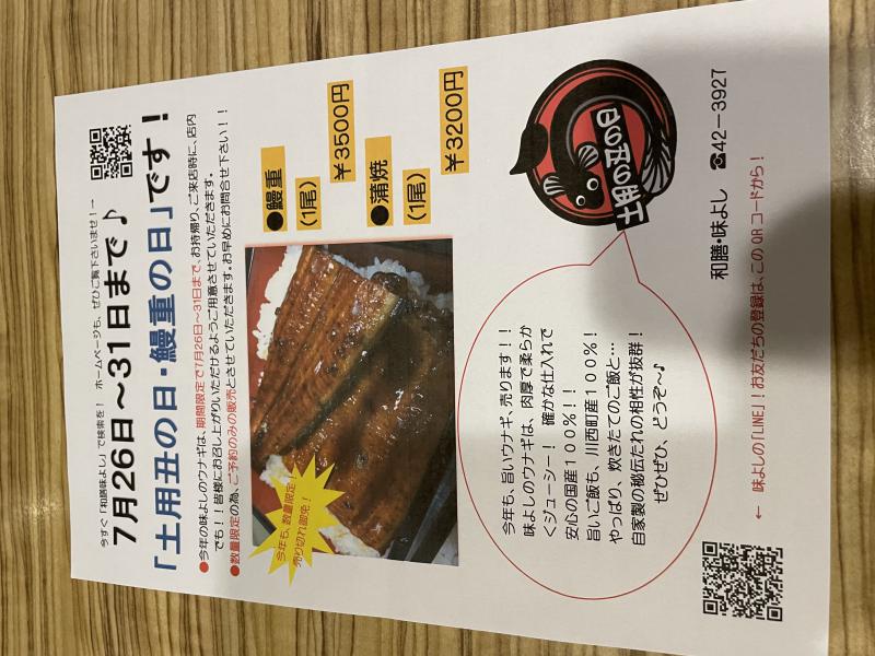 ▼★味よし「今年も、土用丑の日がやって来ますよー♡」
