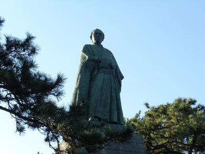 写真は桂浜にある龍馬像。右手を懐に入れブーツを履いて